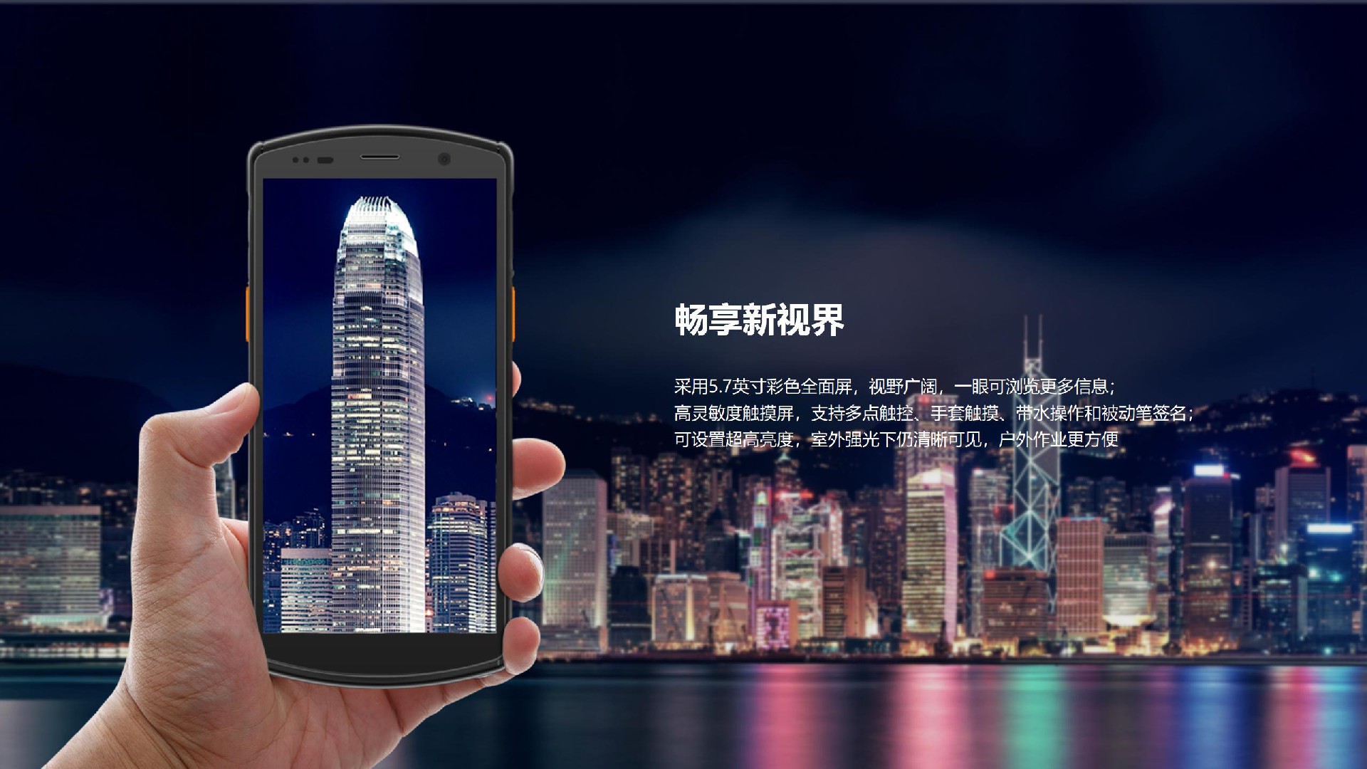 采用5.7英寸彩色全面屏,視野廣闊,一眼可瀏覽更多信息;高靈敏度觸摸屏,支持多點(diǎn)觸控、手套觸摸、帶水操作和被動(dòng)筆簽名: